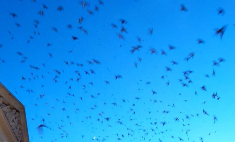 “O céu está absolutamente cheio deles”, disse Jess Tremblay, naturalista de parques de metrô, ao News 2. “Algumas pessoas os descrevem como uma espécie de tornado de pássaro”.
