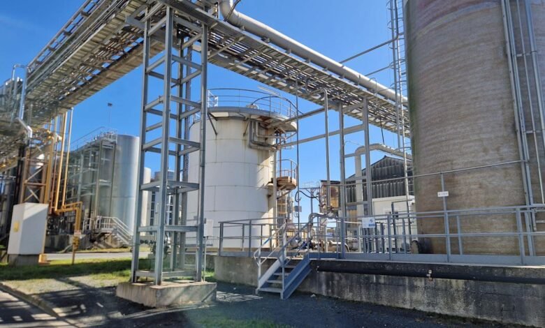 À medida que as substâncias se tornam mais importantes para a economia global, a empresa química está se expandindo ao lado do Oceano Atlântico, que está brilhando em sua planta de processamento.