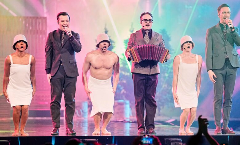 Este ano, os favoritos incluem a Suécia, que venceu o concurso sete vezes desde a primeira Eurovision em 1956. O grupo Kaj, um trio de finlandeses de língua sueca, está entrando este ano com “Bara Bada Bastu”, uma ode à tradição nórdica de ir à sauna. A música, que apresenta a estadia recriando uma sauna completa com dançarinos em toalhas, é a música mais transmitida do concurso deste ano, segundo o Spotify.
