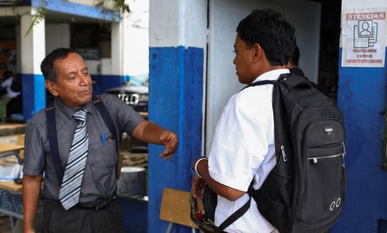 SAN SALVADOR – Oscar Melara, diretor de uma escola técnica em El Salvador, as estações no portão da frente todos os dias para inspecionar a conformidade do código de vestimenta enquanto os alunos entram.
