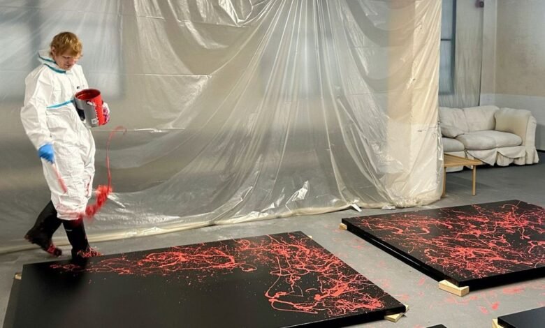 Por meio do Instagram, Sheeran compartilhou sua paixão: “No ano passado, entre concertos e concertos, eu estava pintando. Eu amo pintarMais por diversão e dar aos amigos, mas desta vez eles me incentivaram a fazer uma exposição deles (Damien Hirst) e (Galeria Heni). “O artista explicou que Pintar quando você não está trabalhando em um álbum“Só para fazer algo criativo com o meu cérebro”, descrevendo sua técnica como “cores espirrando nas telas, pensa em Jackson Pollock, mas com Pintura em cores caseiras“.