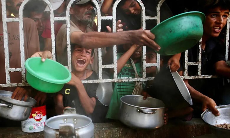 Em 22 de julho, os palestinos estavam tentando fazer uma refeição quente em uma cozinha de caridade em Gaza.