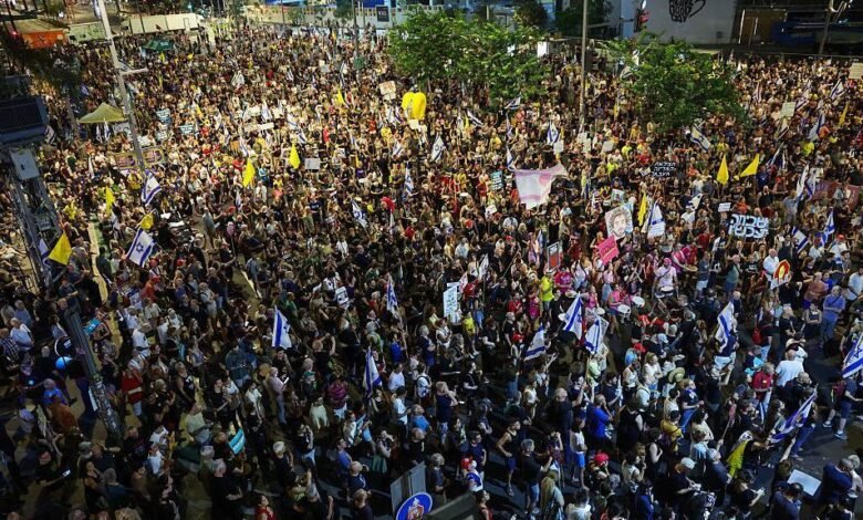 O primeiro -ministro israelense Benjamin Netanyahu criticou os protestos de que eles “apertariam a atitude do Hamas” e retardam a liberação dos reféns.