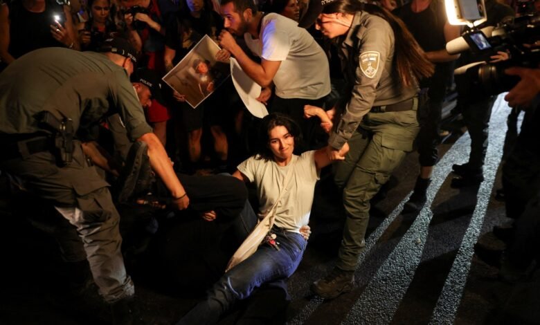 No domingo, a polícia israelense suprimiu manifestantes que tentaram fechar uma rua principal no centro de Tel Aviv, em protesto contra a falta de conclusão Faixa de Gaza.