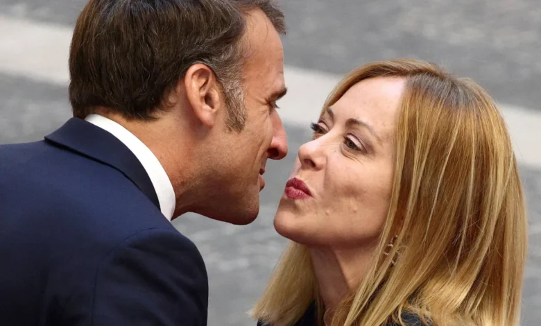 Meloni e Macron calma tensão francesa-italiana … e o começo é um beijo