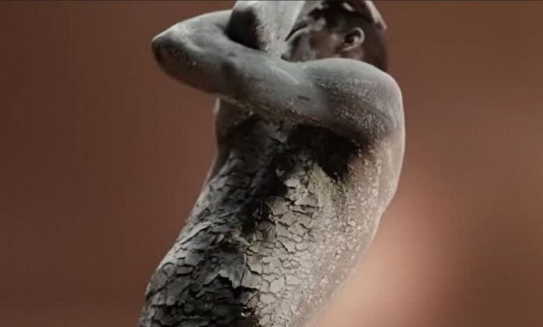 A narração continuou: “Para aqueles que poderiam arranhar dia e noite. Para aqueles cuja pele sentirá seca mesmo pela água …” Esse segmento é acompanhado por cenas de uma mulher negra com as marcas de arranhões acima mencionadas.