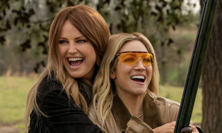 As esposas de caça é uma série boba e atrevida de mistério de assassinato na Netflix – se é isso que você gosta. Acima, Malin Åkerman e Brittany Snow,