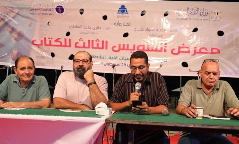 The third Suez Book Fair, organized by the Egyptian General Book Authority, witnessed a symposium within the axis of “creators and prizes to celebrate the poet Ibrahim Ahmed Abu Samra”, on the occasion of his victory in the State Encouragement Prize in the Public Poetry of the year 2025 for his collection with the Palm of Poetry, the meeting was moderated by the poet Ahmed Ayed, and the two poets Hatem Merhi and Medhat Mounir participou.