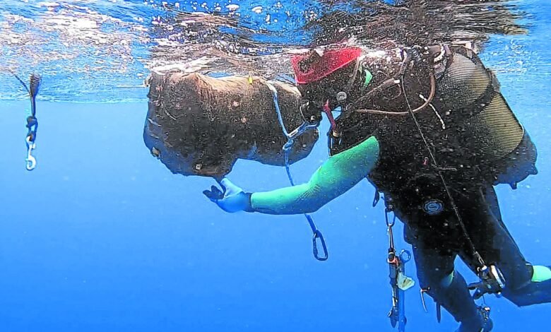 Isso recupera um estoque de drogas preso ao casco de um cargueiro