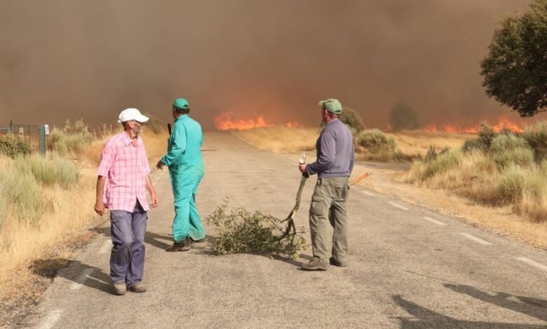 Três vizinhos voluntários no fogo de Cipérez, em Salamanca. JM García