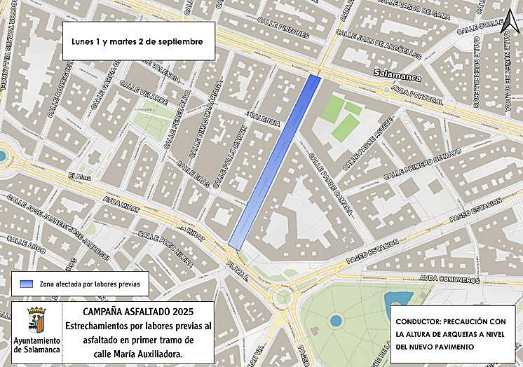 E até terça -feira, 2 de setembro, as restrições da estrada continuarão na rua María Auxiliadora, entre as avenidas de Portugal e Mirat, devido ao levantamento de tapas e moagem antes das obras apaixonadas.