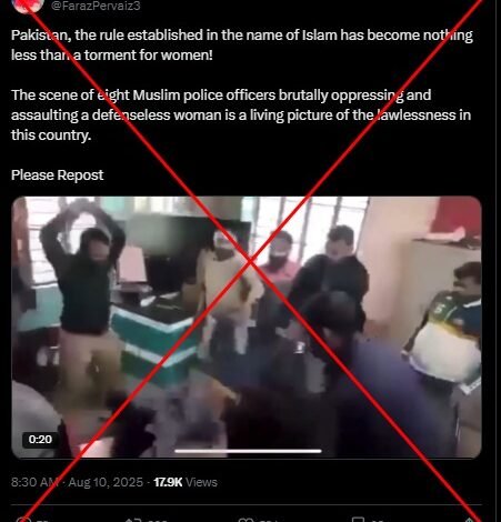 Imagens de um grupo de homens agredindo outra pessoa surgiu em postos de mídia social, alegando falsamente que mostra “policiais muçulmanos” espancando uma mulher no Paquistão. Mas o clipe é antigo e vinculado a um caso envolvendo um partido no poder no estado de Bengala Ocidental do leste da Índia.