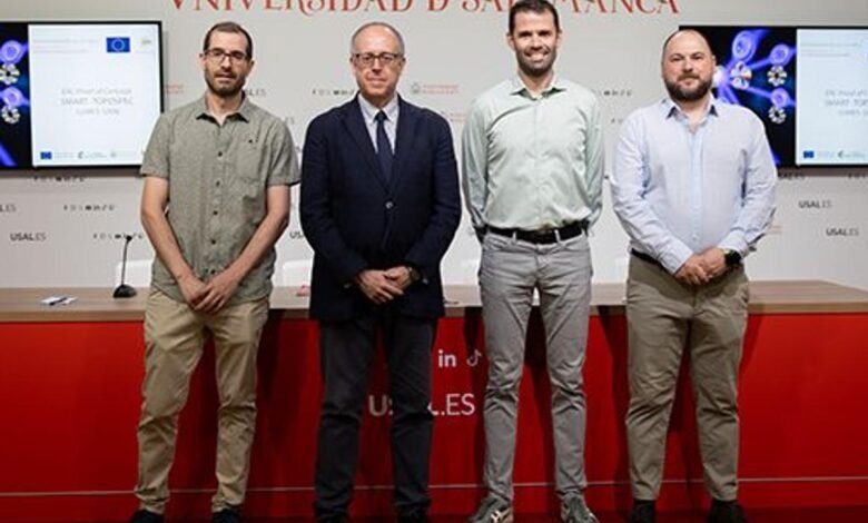 It is expected that ‘Smart-Topospec’ (ultra-granted topological spectroscopy by structured light assisted by artificial intelligence) begins in January 2026 and has a duration of 18 months, according to José Miguel Mateos Roco, Vice Chancellor for Research of the USAL, at the press conference for the presentation of the project, in which he was accompanied by Carlos Hernández García, a researcher ERC no grupo de aplicações da aplicação e Photonica e diretor da Unidade de Excelência em Lumes; José Caridad, pesquisador de ERC no Laboratório de Materiais Quânticos Quânticos e Vice -Vice -Diretor Lumes; e Ignacio López Quintás, pesquisador do grupo de aplicações laser e fotônico do USAL.