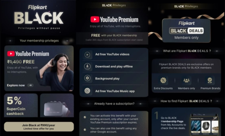 Flipkart Black Association: A principal empresa de comércio eletrônico do país Flipkart lançou agora um novo plano de assinatura ‘Flipkart Black’ para seus clientes. A coisa mais especial sobre esse plano é que os assinantes receberão um ano de assinatura Premium do YouTube gratuitamente.