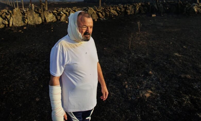 Um vizinho de Cipérez feriu no fogo: “O fogo correu mais do que eu”