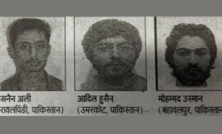 Os nomes desses terroristas são Hasnain Ali, que pertence a Rawalpindi, Paquistão. O outro nome é Adil Hussain, que é o terceiro terrorista de Umarkot, Mohammad Usman, que é de Bahawalpur no Paquistão.