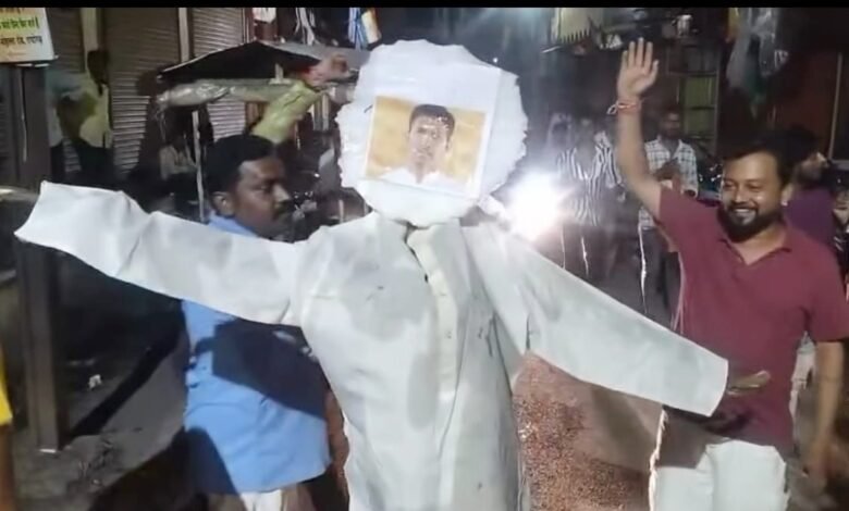 A efígie do presidente do MP do Congresso foi queimada na cidade natal de Digvijay Singh, o MLA não passou a se tornar presidente distrital de Jayawardhan – efígie do presidente do PCC Jitu Patwari Burnt na cidade natal de Digvijay Singh, Raghogarh Lcln Lcln Lcln
