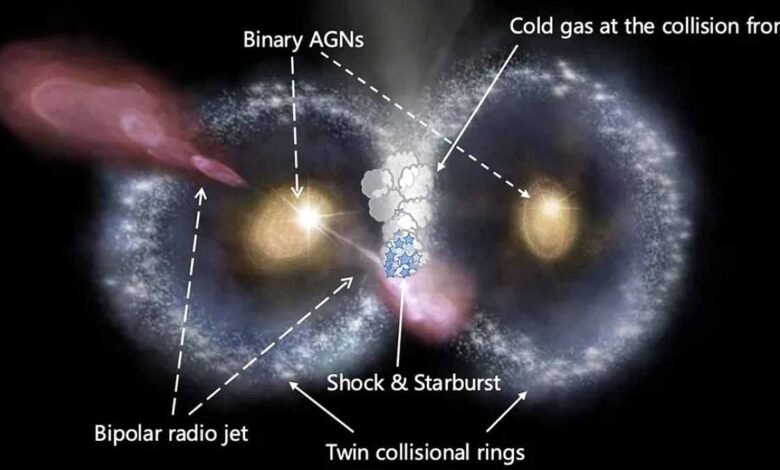 O Telescópio de James Web Space (JWST) descobriu uma visão única no espaço, que foi nomeada ‘Cosmic Owl’ pelos cientistas. Esta é uma estrutura feita de duas colisões de galáxias de anel que se assemelham ao rosto de uma coruja. Essa descoberta ocorreu no espaço 11 bilhões de anos -luz de distância. Está ajudando a entender o desenvolvimento da galáxia.