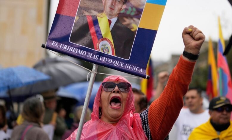 Milhares de colombianos protestam após a prisão da Câmara do ex -presidente Uribe por corrupção