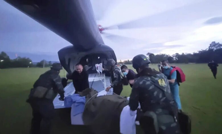 Airando o soldado ferido, o exército da Tailândia (foto- o exército real da Tailândia)