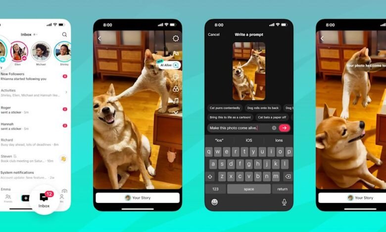 No momento, o recurso existe apenas para o recurso Histórias de Tiktok, por isso é para mais compartilhamento efêmero do que o que você normalmente pode postar no aplicativo. Você começa com uma postagem de histórias de imagem estática (acessada na caixa de entrada do aplicativo) e escolhe a nova opção “Ai Alive”, que o leva a “dar vida a esta foto”. O Tiktok aparecerá sugeridos sugeridos, mas você também pode criar o seu próprio.