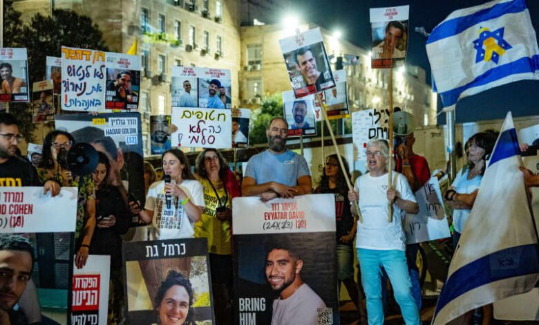 Enquanto isso, os israelenses preparados para uma greve geral em todo o país e manifestações pedindo um acordo imediato para levar os reféns para casa e terminar a guerra. As manifestações começaram no sábado à noite na praça de reféns de Tel Aviv e em outras cidades.