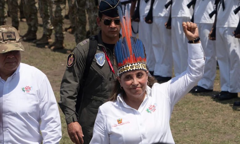 Cinco, Peru (AP) – Presidente peruana Dina Boluarte na sexta -feira viajou para uma ilha do rio Amazon no centro de um disputa territorial com a Colômbiaonde ela afirmou a soberania inquestionável do Peru sobre o território.