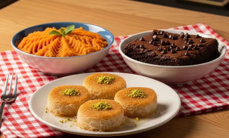 É difícil esquecer isso depois de provar essa sobremesa popular na culinária do Oriente Médio. Kunafa, imerso em sua camada dourada e xarope de açúcar, é uma sobremesa que vence imediatamente o coração. Ele vem em toda a variedade, como chocolate, pistache, amêndoas, coco e frutas secas.