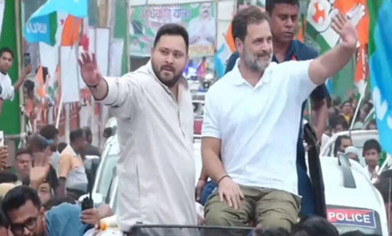 Rahul Gandhi e o líder do RJD Tejashwi Yadav terminaram o primeiro dia de ‘eleitor Adhikar Yatra’ no distrito de Aurangabad à noite. Durante o eleitor Adhikar Yatra, no distrito de Aurangabad, o deputado do Congresso Rahul Gandhi alvejou o Partido Bharatiya Janata (BJP) e a Comissão Eleitoral (ECI) para manipular listas de eleitores e alegou que os votos estavam sendo roubados em nome de uma revisão intensiva especial (SIR). O parlamentar do Congresso disse que Sir significa roubar votos do povo de Bihar. Antes eles costumavam fazer isso secretamente. Agora eles estão fazendo isso abertamente na frente de todos. Ele fez um ataque contundente ao BJP dominante, dizendo que nem ele, nem Tejeshwar Yadav, nem o povo de Bihar têm medo do primeiro -ministro Narendra Modi, Amit Shah e da Comissão Eleitoral. Durante a visita a Aurangabad, o líder do RJD TeJashwi Yadav atacou o Partido Bharatiya Janata (BJP) sobre a revisão intensiva especial (SIR) em Bihar e alertou o primeiro -ministro Narendra Modi para não enganar o povo de Bihar. Ao administrar os direitos dos eleitores, Yatra, garantimos que o vermelho de alguém não tem poder de que podemos reduzir os votos de Biharis. Duas pessoas de Gujarat podem reconhecer os eleitores de Bihar? O primeiro -ministro Modi deve parar de enganar o povo de Bihar … ‘Seremos pesados com as pessoas, uma centena de Bihari em cem’.