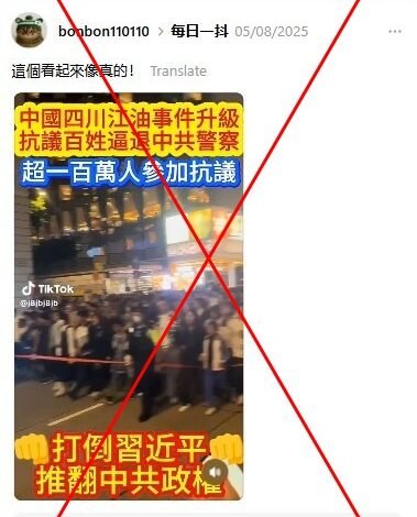 “O incidente de Jiangyou em Sichuan, a China, aumenta como manifestantes forçam a polícia a recuar”, lê parte do texto tradicional chinês sobreposto sobre a compilação, referindo -se a um Caso de bullying escolar viral na cidade do sudoeste (Link arquivado).