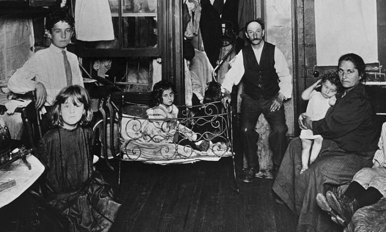 O fotógrafo Jacob Riis documentou as condições esquálidas em favelas e cortiços na cidade de Nova York, que ele publicou em um livro intitulado “How The Other Half Lives” em 1890.