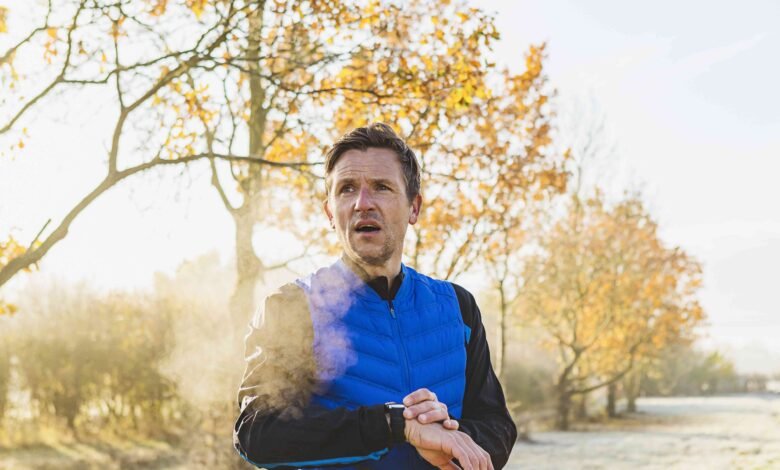 - Enquanto se exercita em clima frio ou seco, cubra a boca e o nariz com um lenço ou máscara. Isso pode ajudá -lo a aquecer e úmido o ar respirável.