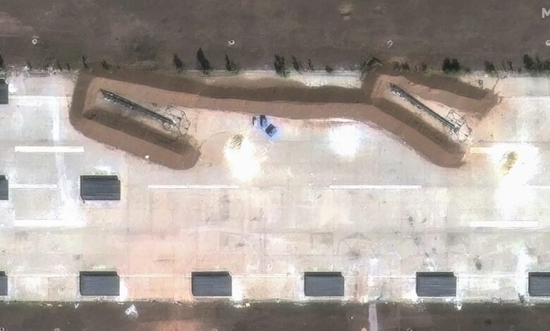 Novas imagens de satélite mostram que a Rússia construiu vários lançadores de drones na pista em um aeroporto perto das linhas de frente em uma região ocupada da Ucrânia.
