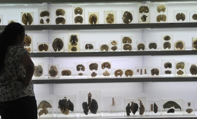 A visão do banco cerebral (museu) Nimhan (Instituto Nacional de Saúde Mental e Neurologia) em Bangalore. | Imagem de crédito: imagem do arquivo