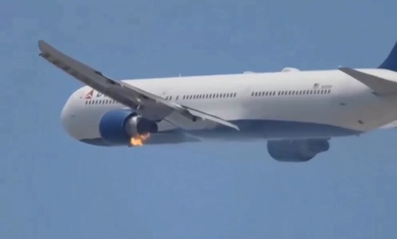 O motor Boeing 767 da Delta pega fogo no meio do ar logo após a decolagem, faz pouso de emergência em LA