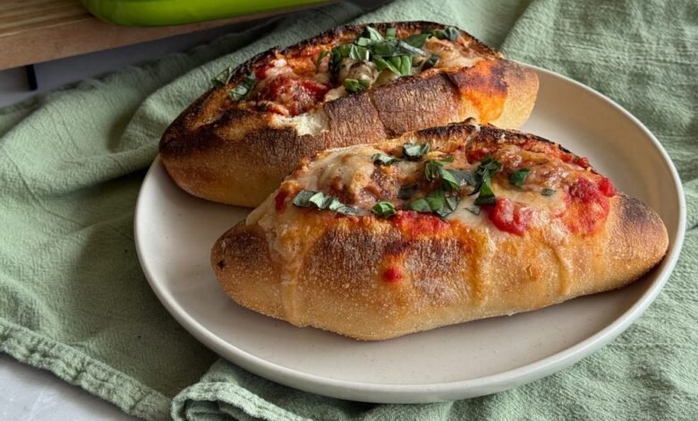 Ingredientes: 28 onças de San Marzano Tomatoes, uma colher de sopa de tempero italiano, 12 almôndegas veganas congeladas, 4 onças de pedaços de mussarela vegana, uma colher de sopa de azeite de alho, ¼ xícara de folhas de manjericão e rolos de sanduíches do Four Trader Joe