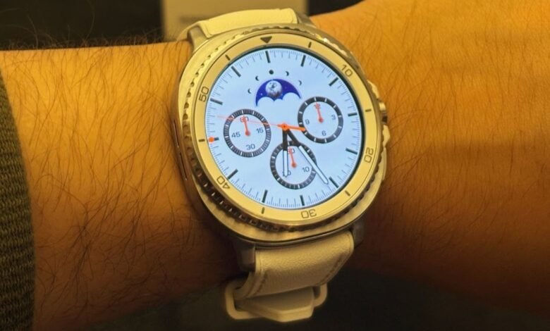 À primeira vista, o clássico do Watch 8 é fácil de confundir com o Ultra. Possui a mesma estrutura de almofada ao quadrado, corpo de aço inoxidável e presença de pulso grossa. O meu veio em branco e imediatamente se destacou, as pessoas realmente o reconheceram como “o relógio Samsung com o anel giratório”. Essa moldura ainda é incrível, e é uma das poucas entradas de smartwatch que realmente faz sentido. Flick através dos menus sem borrar a tela? Sim, por favor.