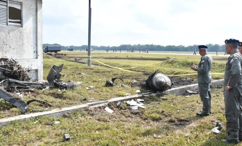 Fotos do aeroporto postado pela Força Aérea da Malásia mostraram detritos da aeronave dentro e perto de uma pista.