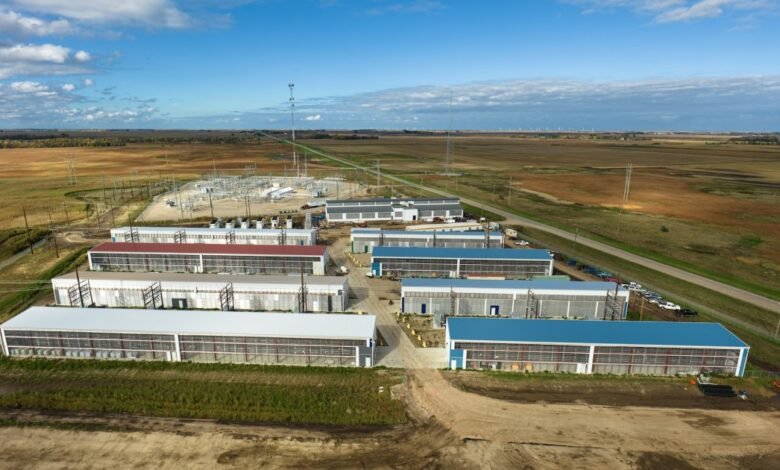 Um data center para mineração de criptomoedas, serviços em nuvem e computação de IA no Condado de Stutsman, Dakota do Norte.Halbergman/Getty