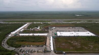 O centro de detenção foi construído rapidamente há dois meses em um leve aeroporto de treinamento usado no Centro Everglades…