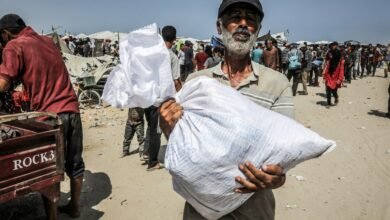 Os palestinos coletam ajuda alimentar do Centro de Distribuição de Ajuda Humanitária dos EUA em Rafah.Abed Rahim Khatib/Ap Obtenha suas…