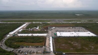 O centro de detenção foi construído rapidamente, há dois meses, em um aeroporto de treinamento de baixo uso, onde as…