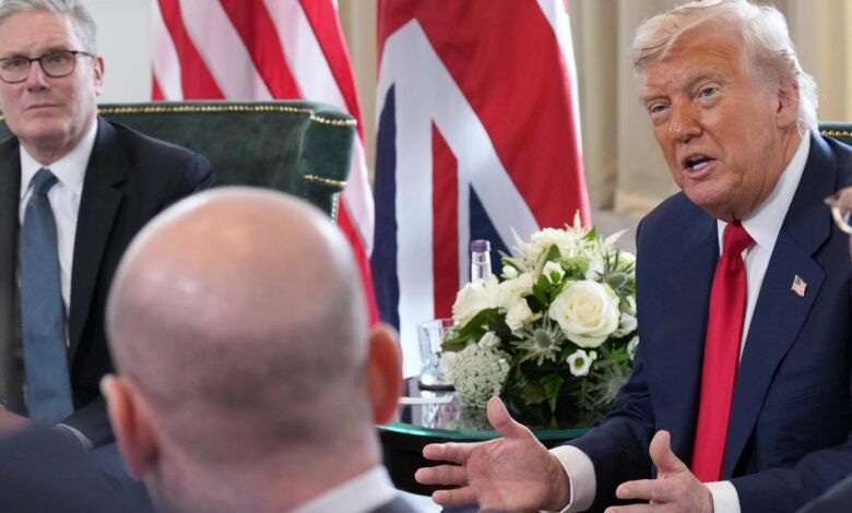 O presidente dos EUA fala durante sua visita ao primeiro -ministro britânico Cuidado Starmer No Turnberry Golf Stadium de Trump, ele disse que os Estados Unidos “criarão centros de jantar”, mas não forneceram detalhes.
