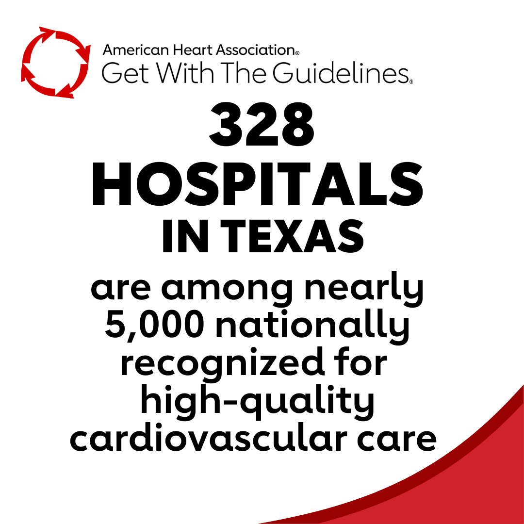 Todos os anos, a American Heart Association reconhece hospitais em todo o país para acompanhar as diretrizes atualizadas com base em pesquisas para garantir o acesso ao resgate da vida. Para uma lista de hospitais reconhecidos no Texas este ano, visite, Corações e mentes de saúde, um hospital simultaneamente.