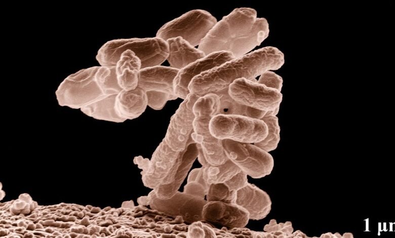 Uma imagem microscópica eletrônica de um grupo de bactérias coli. | Crédito