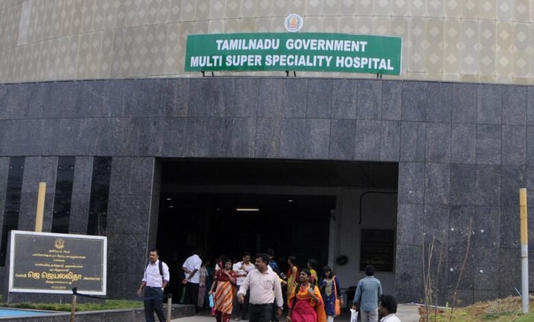 O Hospital Tamil Nadu é um governo multi -especialista (TNGMSSH), Omandurar Estate. Imagem de crédito do arquivo: b. Guti Ramalingham